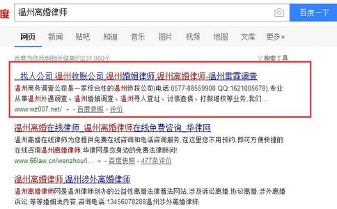 SEO外包:温州离婚律师优化案例
